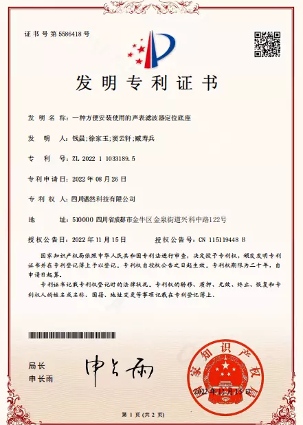 ZR Hi-Tech has applied for an invention patent certificate for a convenient SAW filter positioning base, which is already in use on the production line, ensuring high-quality products for customers.