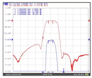 | Ripple in Bandwidth(1610.18~1626.16MHz) | 1.0dB Max.0.5dB Typ.; | |