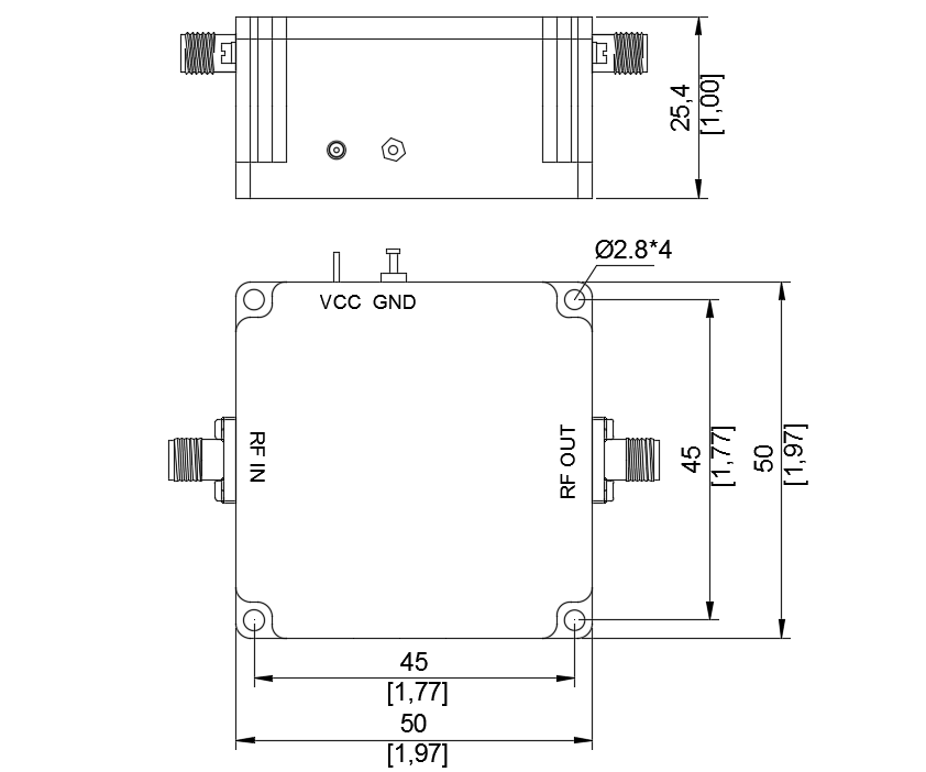 1 to 18 GHz 25dBm Power Amplifier with 35 dB Small Signal Gain
