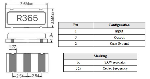 The LT-SR-365-3070 is a high-performance Surface Acoustic Wave (SAW) resonator offering precise frequency operation between 364.925MHz and 365.075MHz. This component features a center frequency of 365MHz with low insertion loss (1.5 to 2.0 dB) and excellent quality factor (Q) of 12000. Designed for surface mount applications, this resonator provides reliable performance in various electronic circuits.
