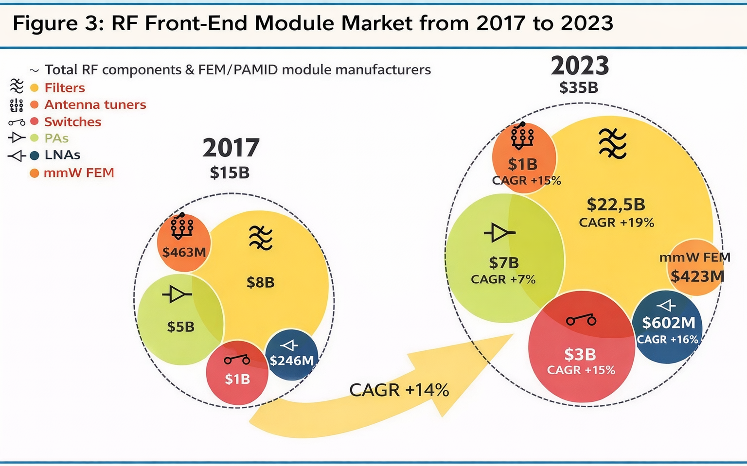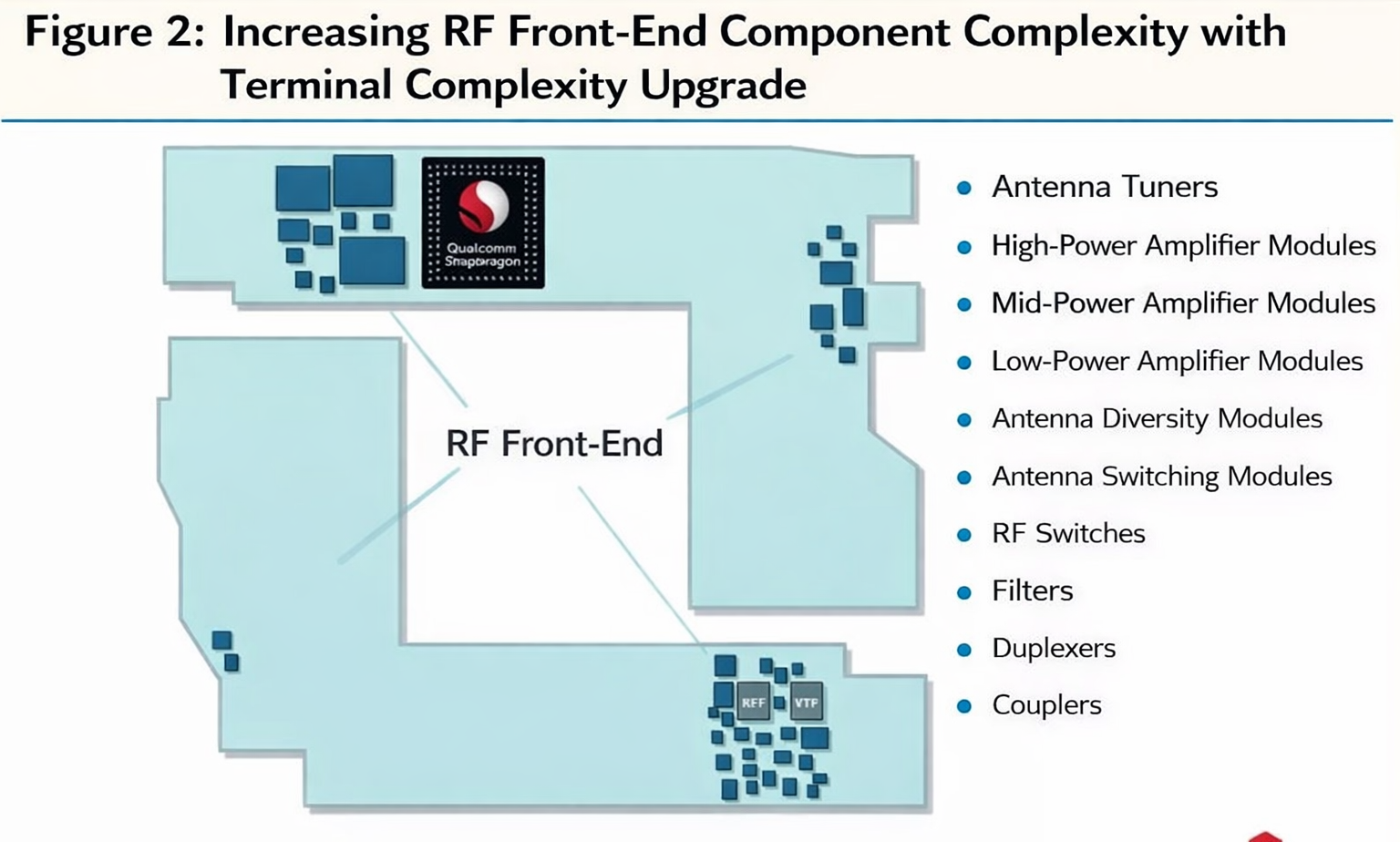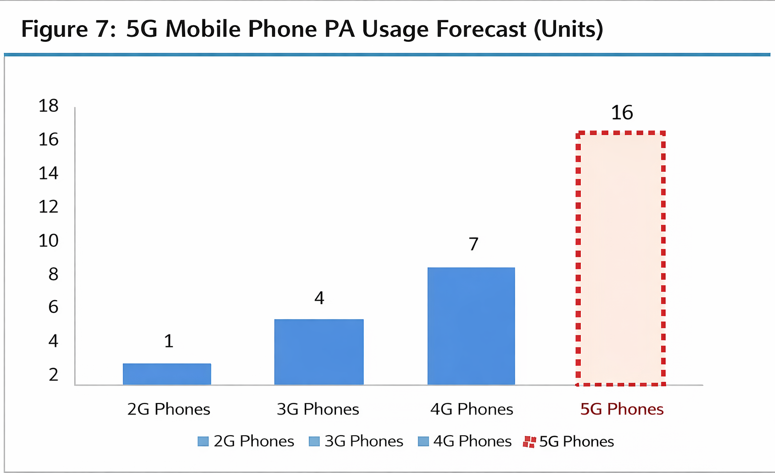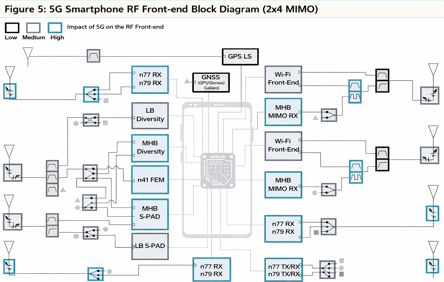 For example, a 4G multi-mode, multi-band smartphone typically requires 5 to 7 PA chips. In contrast, a 5G smartphone may include up to 16 PA chips. This significant increase highlights the growing complexity of RF front-end design in the 5G era.