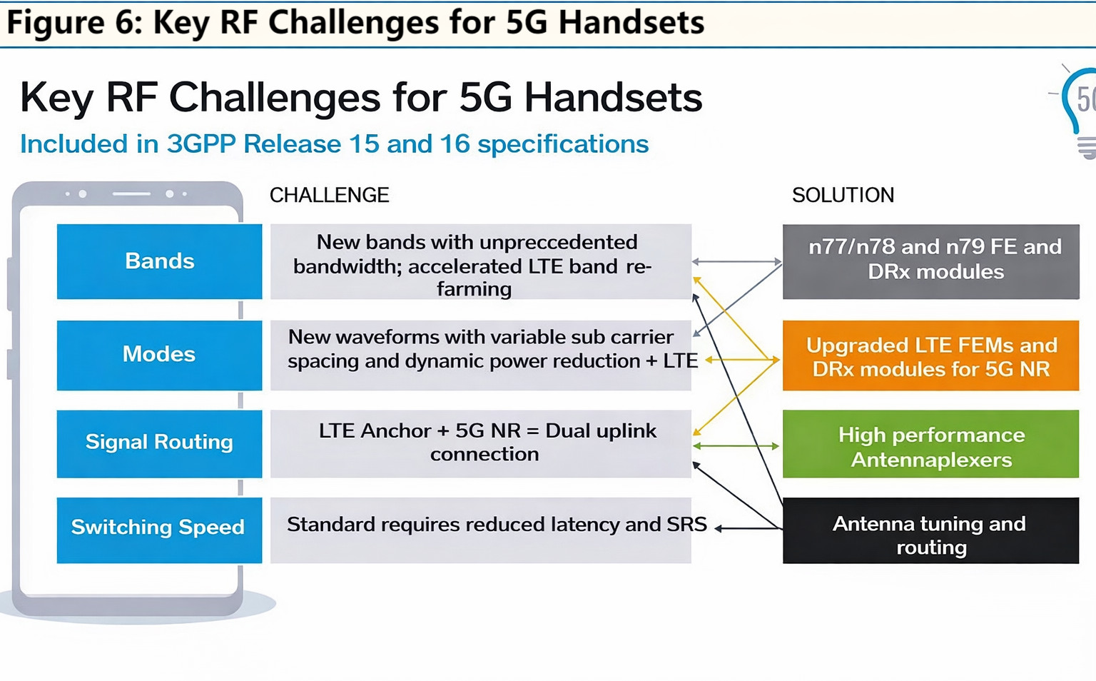 Whether at the base station end or the device terminal, the challenges 5G brings to suppliers are first reflected in the radio frequency aspect. This is because the RF front end is the key gateway for devices to access the network.